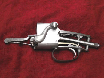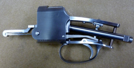 The Fraser rifles were originally made in the 1880's, by Daniel M. Fraser of Edinburg, Scotland. Chamberings were largely .303 British, but they were also made for .450-3-1/4", .450-400, .500-3", .500/450 Express, and similar. Probably less than 500 of these rifles were produced, and of course far fewer actually made it to the USA. The originals are considered to be of high quality and robust enough to handle smokeless pressures. This action has a vertical motion falling block with an internal hammer. The lever drops the breechblock to the load position, simultaneously cocking the hammer, then further downward movement activates the extractor. Both the sear engagement and the sear pressure are individually adjustable. The trigger pull can be easily set to a clean 2-3 lbs. The receiver, lever, upper tang and trigger plate are machined from solid 8620 steel. The breechblock opening is EDM wirecut. The various screws are machined from 1045 medium carbon steel, which can be heat-treated to reasonable strength without danger of brittleness. The hammer and sear are already hardened, and the springs are electropolished. The breechblock, mainspring hanger, trigger and safety parts are made from pre-hardened 4140. The stock bolt, firing pin bushing tool, and sear pin removal tool are provided with the action. New for 2019 - First, an "intercepting sear" - somewhat a misnomer - has been added. This mechanism actually intercepts the hammer fall, if the sear is jarred off while the safety is "on". Second, the extractor has been moved from 7:30 to 9 o'clock, to prevent slipping out from under small-rimmed cartridges. Finally, there is an option for a "bolted safety", as found on some original British rifles. The bolted safety adds $150 to the amended prices below. See picture. Actions will be in the white only. External parts will be hand-polished to a 400-grit finish, but final polishing, and any heat-treating or bluing, will be the responsibility of the customer. Price: $2645.00 Call or email for current delivery times. Left-hand action price: $3145.00 |