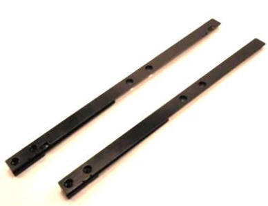 Scope mount rails for the Browning 1885 rifles These are for the Miroku-made high-wall-type rifles. It uses the existing receiver and barrel mount holes, and cantilevers the front scope mount out over the barrel. - Will take either standard or Posa mounts. Will also accept Winchester "A" or "B" type mounts. - Two versions available - BPCR or "sporting". - Winchester low-wall version has been discontinued. Too many height variants to try to accommodate. Price with screws - $91.00 plus shipping. |